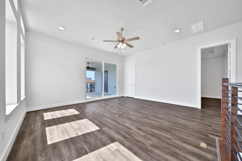 Second floor plan of a house showing four bedrooms, three bathrooms, gameroom, storage, HVAC, mechanical room, two balconies (one uncovered), and “Plan 2402” details: 2402 sq ft, 4 beds, 3 baths.